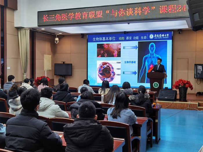 12月13日上午,长三角医学教育联盟“与你谈科学”系列课程第八季第二课在我校知行楼一楼会议室开讲。安徽省转化医学研究院院长、我校肉漫屋