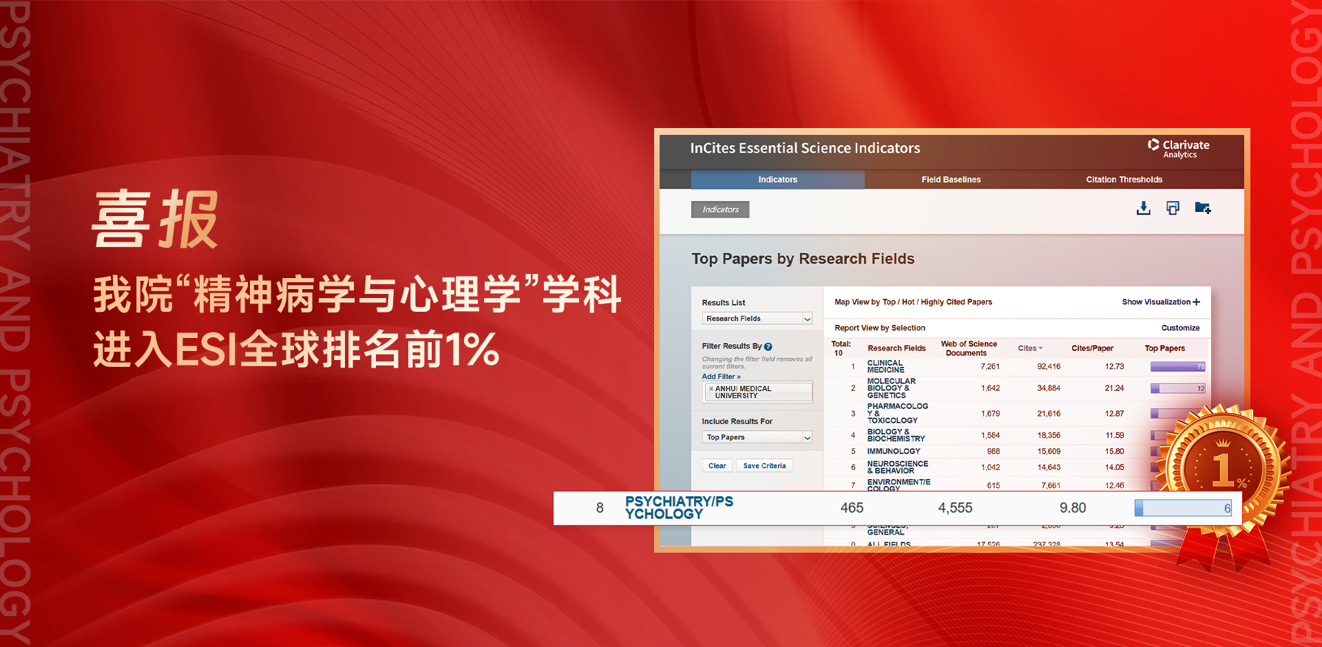 喜报|肉漫屋 “精神病学与心理学”学科进入ESI全球排名前1%