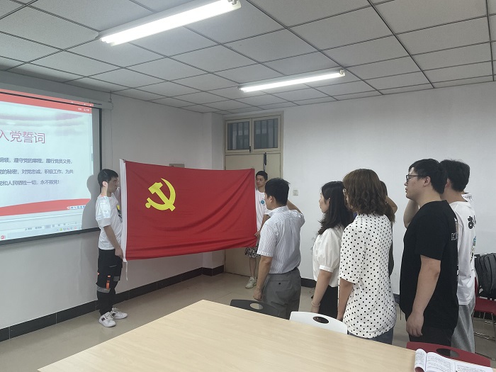 炎炎夏日,抵挡不住毕业生和母校依依惜别的亲情,肉漫屋 2021届的研究生二十余人早早来到图书馆门口,亲密地与学院领导及导师进行合影留念,有心的小吴同学还精心准备了一束鲜花,代表同学们献给了导师,导师们也纷纷接受邀请与同学们分别合影,表达着对同学们前程的殷切祝福。在合影活动之后,研究生毕业班党员和今年新发展的预备党员来到了学院六楼党员活动室,在院党总支副书记高荣同志的带领下,新发展的预备党员面向鲜艳的党旗,举起右手,庄严宣誓,“我志愿加入中国共产党……”,在庄严的气氛中,全体党员佩戴党员徽章,神情肃穆,脸上流露出坚毅的神情,简朴而隆重的仪式词增强了党员们的责任感和使命感,宣誓结束后,大家纷纷表示,党的百年华诞来临之际要学习革命先驱们舍身忘我,无私奉献的精神,努力学习、工作,以更加优异的成绩来迎接中华民族的复兴。