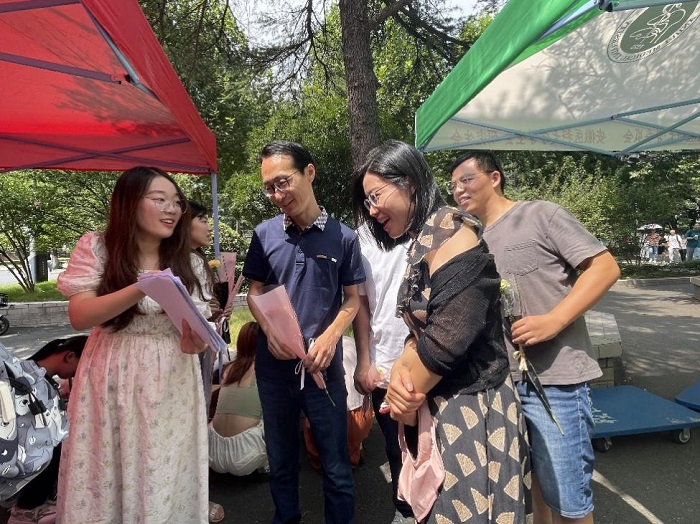 活动中,学生们还为老师献上鲜花,送上了美好祝福。“收到鲜花十分开心,也很感动。作为教书育人的教师,我们工作中难免会有压力,但是看到同学们在告白板上的留言后,心里很温暖。很荣幸能够参加这样的活动,感觉辛苦有了回报。”一位参与活动的老师分享了自己的真实感受。